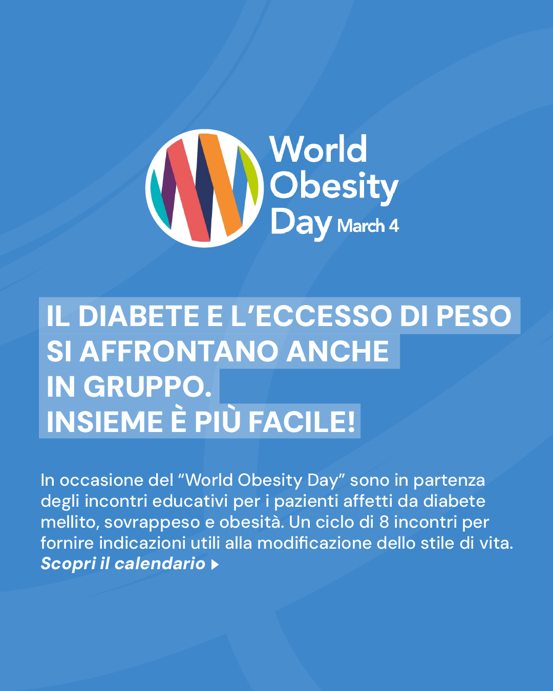 In occasione del “World Obesity Day” sono in partenza gli incontri educativi per i pazienti affetti da diabete mellito, sovrappeso e obesità.